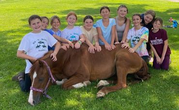 On the final day of camp, campers will participate in a Fun Show to demonstrate the riding skills and knowledge they’ve gained throughout the week. Family and friends are welcome to come cheer them on!