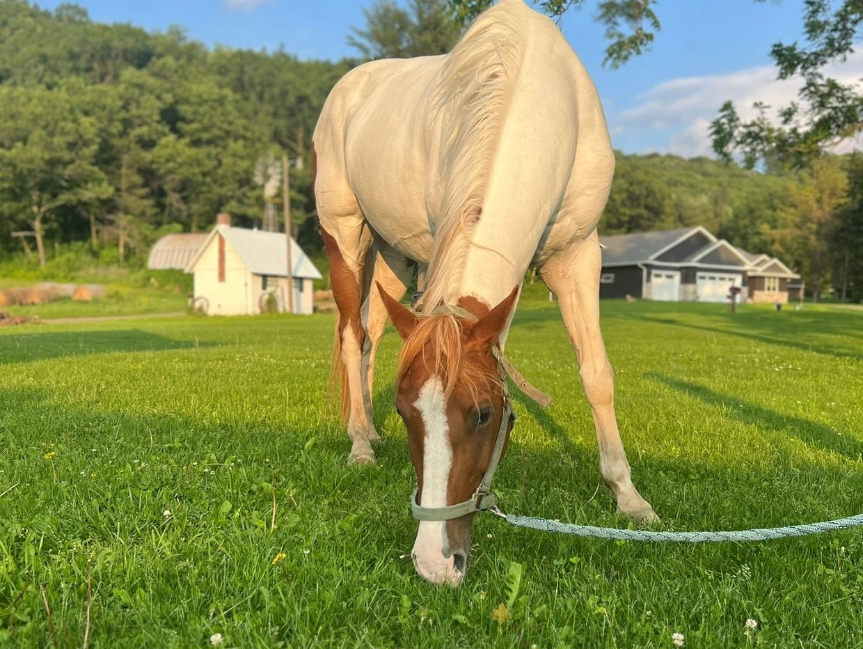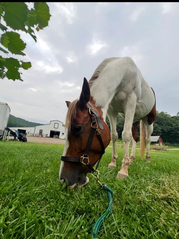 This sweet mare is the first to come up to the gate to greet you, and after a good lesson she loves a nice stretch and some well-earned relaxation. She loves to jump and will happily trot or canter over poles any chance she gets.